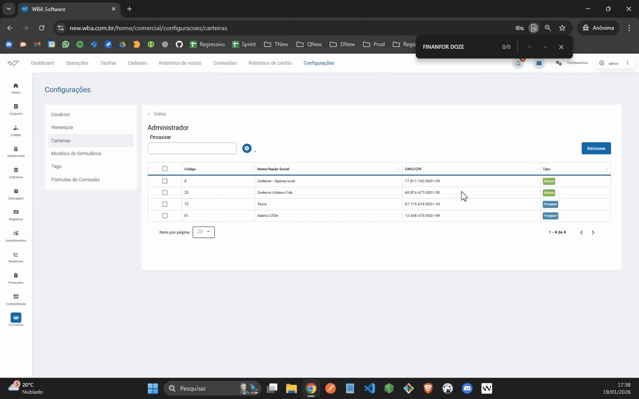 Configurações do Painel Comercial - Fórmulas de Comissão