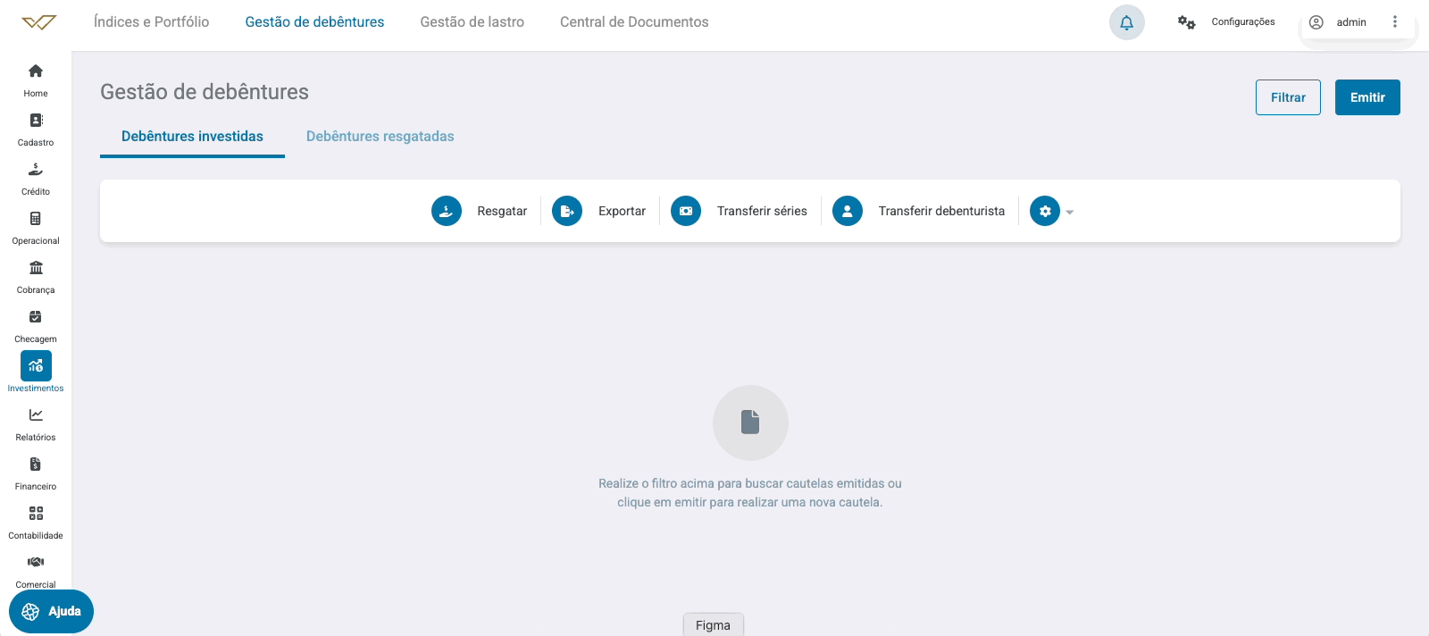 Vá para Gestão de Debêntures > Debêntures Investidas. - Aplique filtros, se necessário: